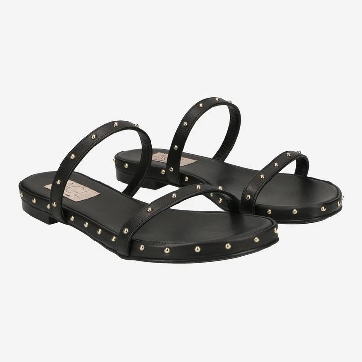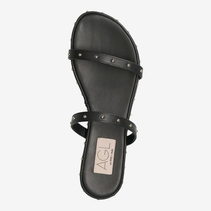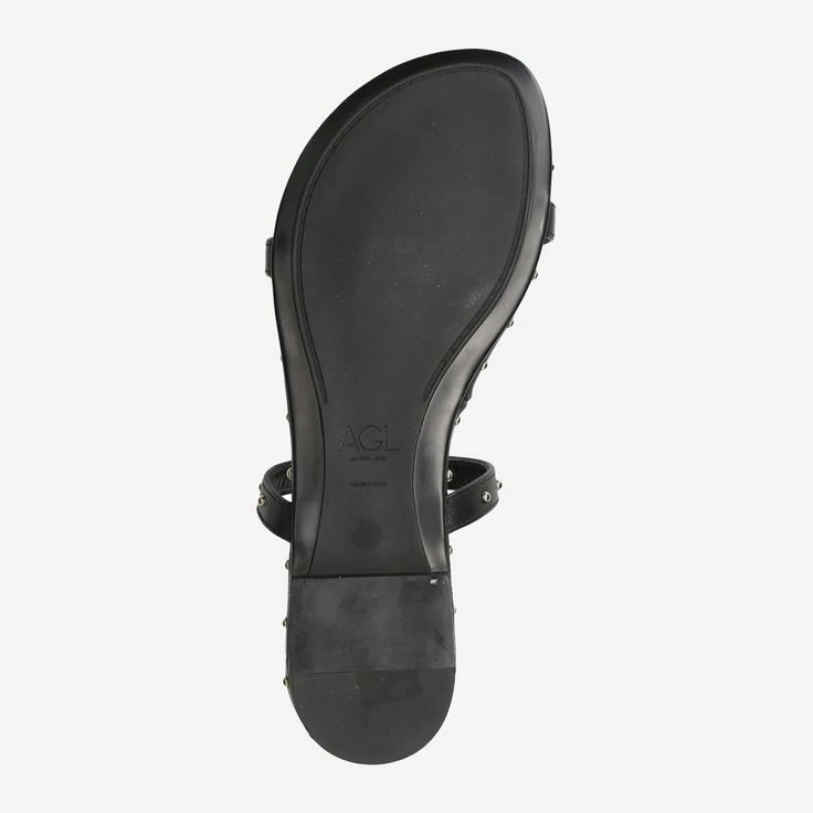 Classic. Noble. Effective. With this exclusive strappy sandal, you can rely on high-quality design from Italy with delicate straps and noble rivet applications. AGL processed in this model black smooth leather, and decorates the straps by gold-colored micro rivets. Design that convinces.