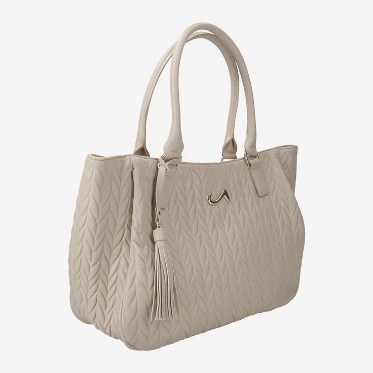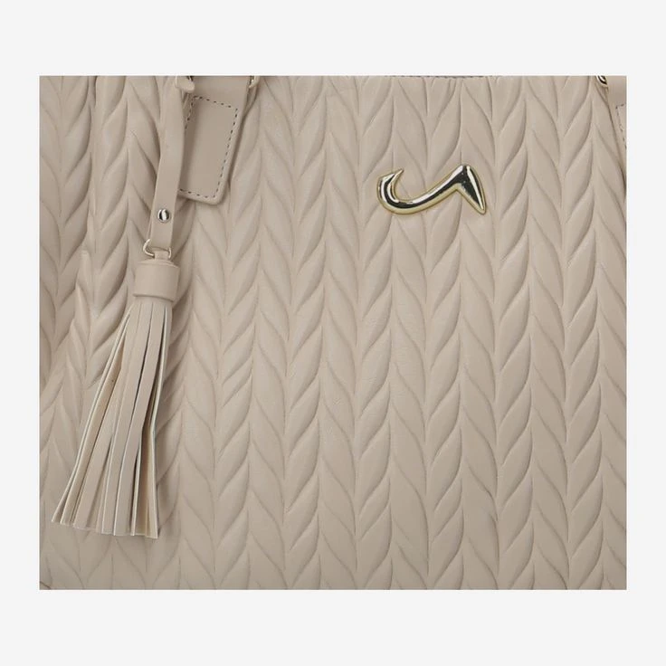 - Interior zippered pocket, zipper closure, interior zippered pocket, zippered compartment (zippered divider), detachable tassel applique, braided all-over look, interior pocket. H. 25 cm x W. 45 cm x W. 15 cm