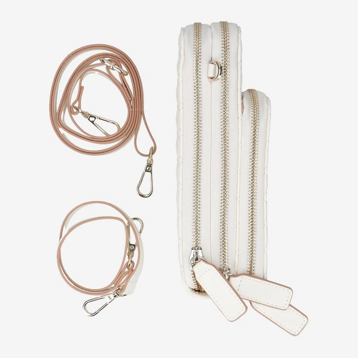 - Zipper closure, logo application, embroidery in ornament quilting, detachable carrying handle, inside pocket, slip pocket, slip pocket, leather applications, h. 20 cm X w. 11 cm X d. 5,5 cm