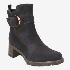 - Exchangeable footbed, suitable for insoles, block heel, entry loop, decorative metal closure, logo embossing, softly padded insole, very comfortable walking feeling, rivet application