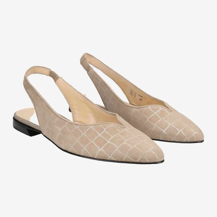 This exclusive sling pump from Brunate gives your outfit a delicate, sophisticated look. The velvety, beige suede is very effectively staged by a shimmering, shiny metallic structure. A stretch insert at the strap gives you pleasant comfort.