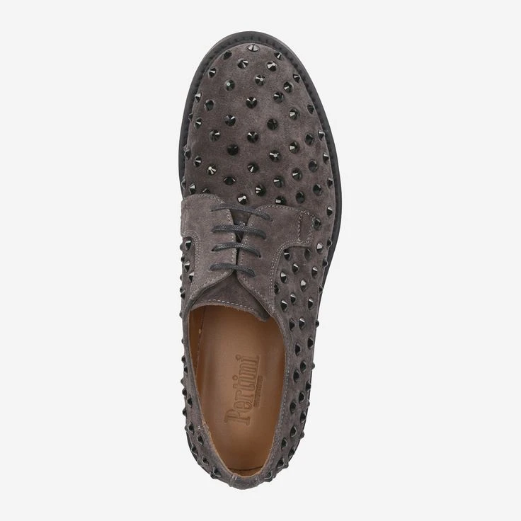 Go for red lipstick, a simple outfit and of course these wonderful lace-up shoes from Pertini. The shoes are made of gray suede and decorated with cool studs. Besides the great look, you will also enjoy the high comfort, because the shoes are fully lined with soft leather and have a sturdy and lightweight rubber sole. You know what they say: good shoes will take you to great places.