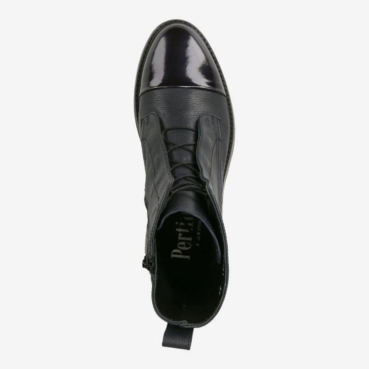 Noble, rocky and stylish presents this handmade ankle boot. The patent leather toe cap serves as the ultimate eye-catcher. The Pertini brand embodies the unique lifestyle of a shoe manufacturer from Spain. Their handmade shoes combine traditional craftsmanship with modern design, making them a must-have for all fashion enthusiasts. The attention to detail and meticulous workmanship make each shoe a work of art that underlines the personality of its wearer.