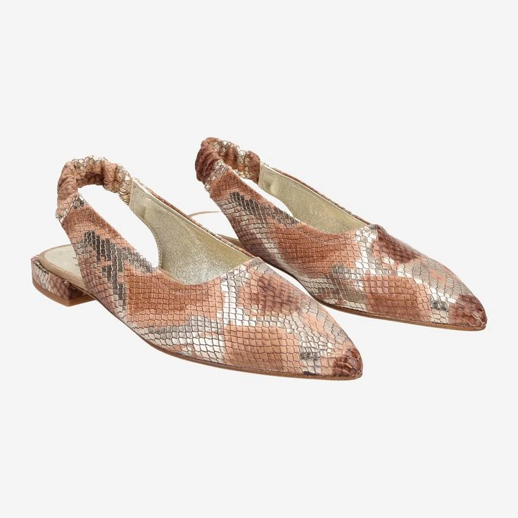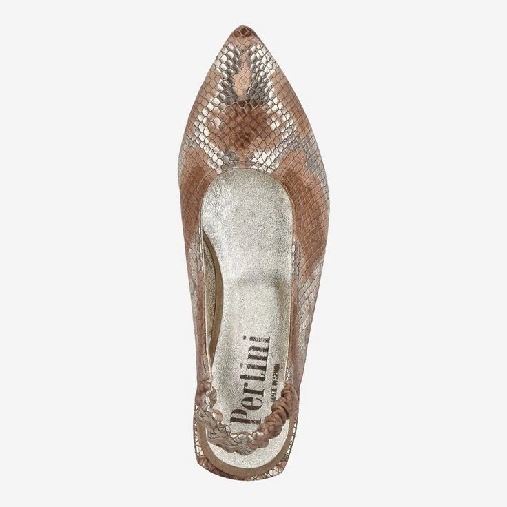 This sling pump from Pertini shines in terms of design, precise craftsmanship and exciting reptile embossing! The animal style has been implemented here by Spanish craftsmanship in the highest quality and authenticity. Pleasant comfort is provided by the inner lining and the outsole made of supple leather. The snakeskin look looks absolutely high-fashion through the metallic shimmer!