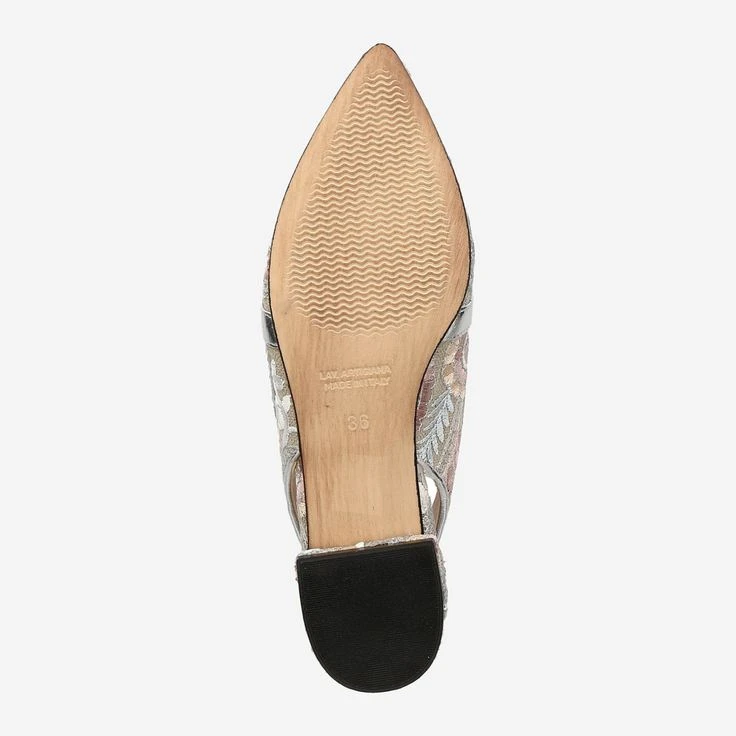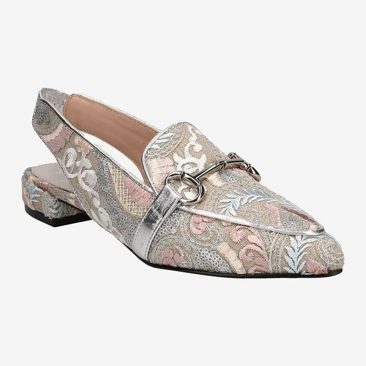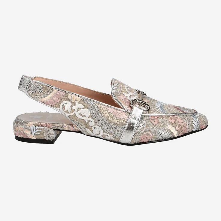 Chic ladies slingspumps from Maripe. The refined ornament pattern brings an interesting look and is perfectly matched with the horsebit on the shoe tongue. The elastic at the heel piece allows for relaxed entry and exit. Give yourself a modern look with this model!