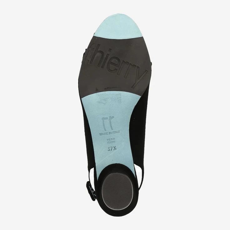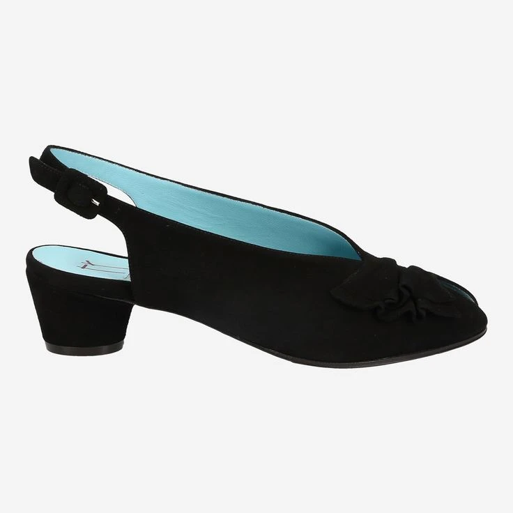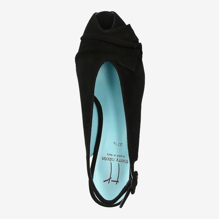 These refined sling pumps from Thierry Rabotin shine in glove-soft suede. The comfortable leather lining ensures a pleasant wearing feeling. The shoe features a comfortable rubber sole and a leather-covered, rounded block heel measuring approximately 47 mm in height. A leather-covered metal closure facilitates entry. The bow-like, wavy leather appliqué on the toe cap adds an unusual detail.