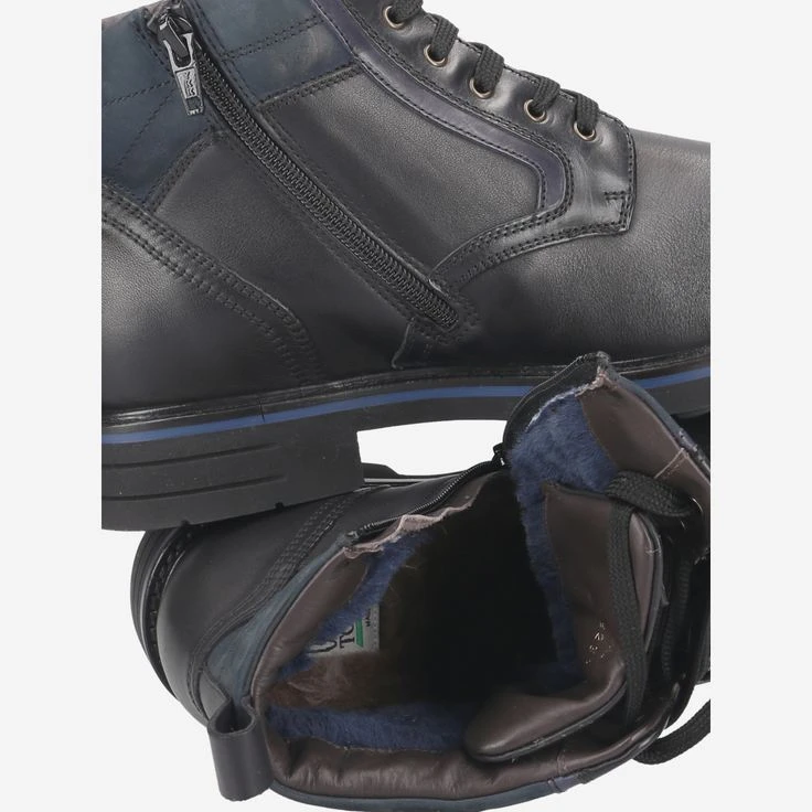 - Warm lining, exchangeable footbed, suitable for insoles, zipper, logo embossing, entry loop, decorative stitching, stitched-through sole