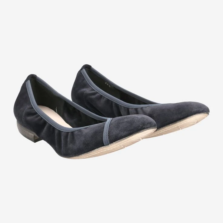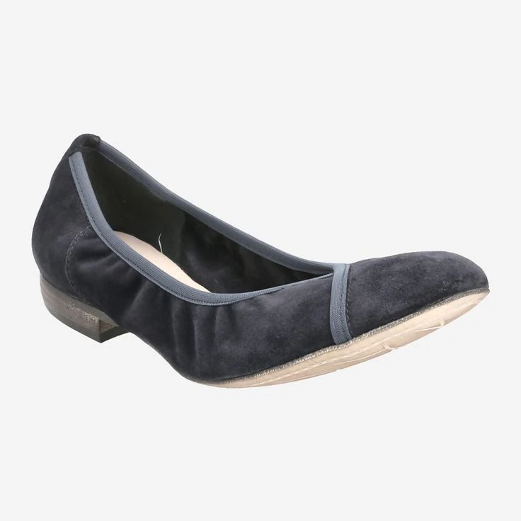 May we introduce you to the flexible and cuddly ballerinas from the Italian manufacturer Donna Carolina? Made of first-class blue suede, the model convinces with a puristic and timeless silhouette. For a light-footed step through the spring.