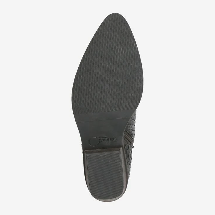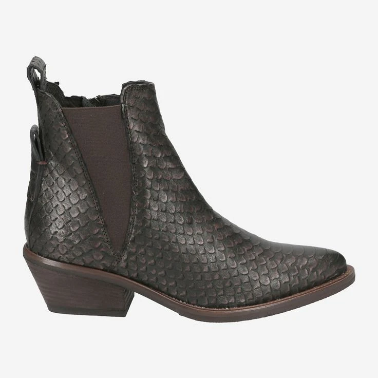 This high-quality ankle boot brings new glamor to your outfits! The leather in reptile look varies in noble bronze, brown and black. The almond-shaped shoe tip, as well as the wide block heel underline the feminine design, and combine the Western style with the animal look in a convincing way! Lateral stretch inserts provide comfort. This ankle boot convinces at first sight!