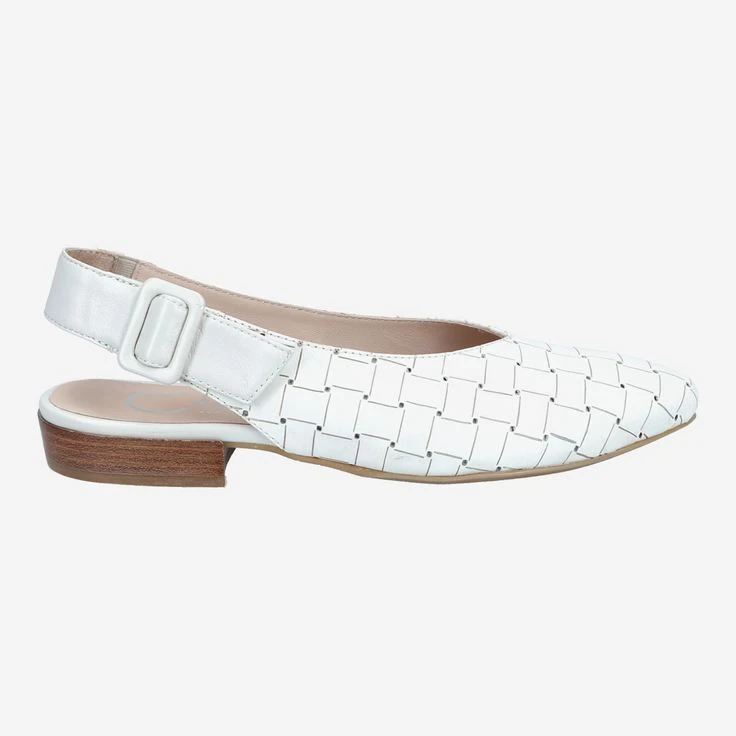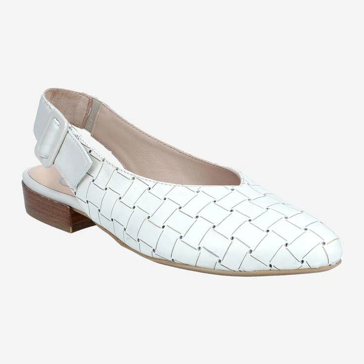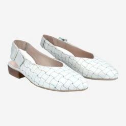 Donna Carolina presents you a very special shoe with this exclusive Italian sling pump. The white smooth leather is evenly structured by embossing and perforations, giving this model a very plastic and noble character.