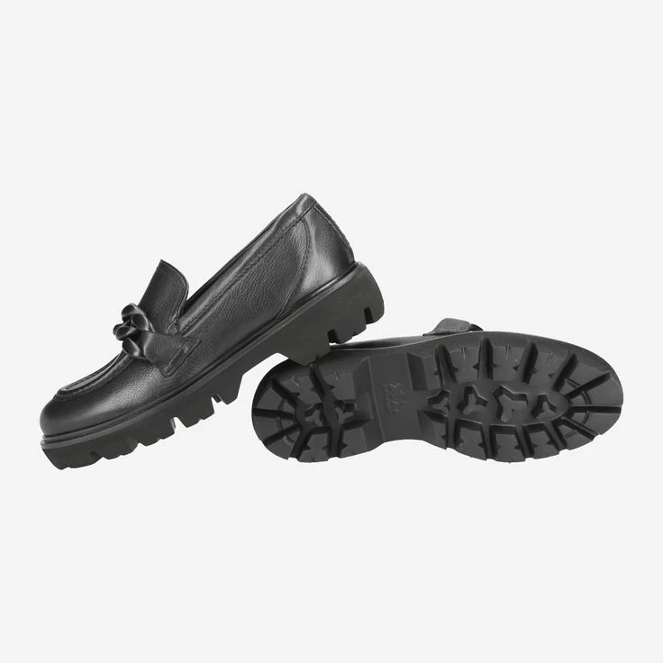 - Block heel, Logo application, Decorative stitching, Loafer application, Extralight sole