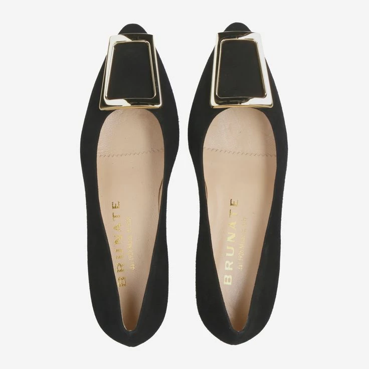 A flirtation between a ballerina and black pumps can be so adorable! Don’t you think? This elegant women’s shoe is a successful mix of the playful, French design of the ballerina and the elegance of a classic business pump. The gold-tone jewelry application in buckle design serves as a luxurious eye opener!