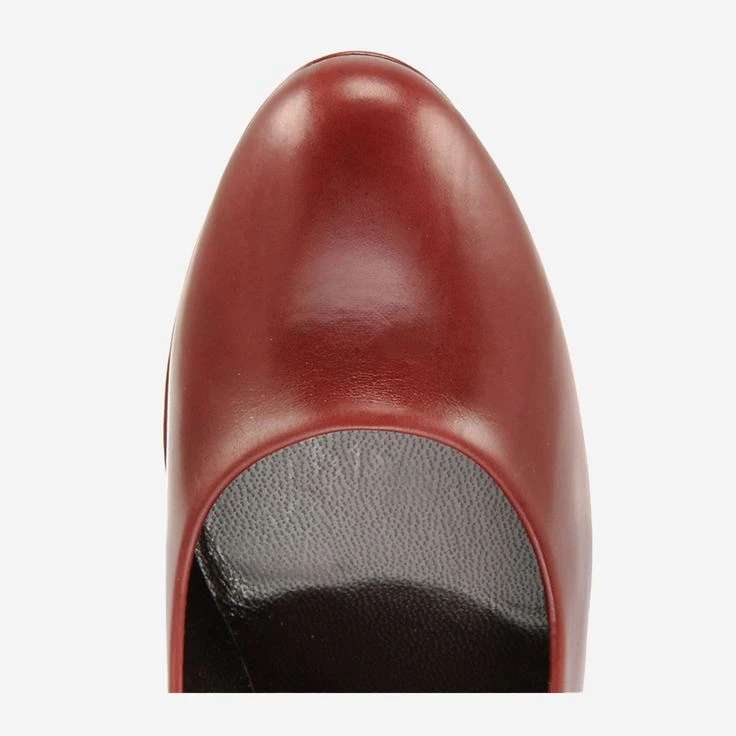 Dark red women’s pumps from Guglielmo Rotta. The upper is made of smooth leather, the lining is lined with leather. The pumps have a leather insole and a leather sole with rubber overlay. The heel is about 105mm high, the platform is about 25mm, both are leather covered.
