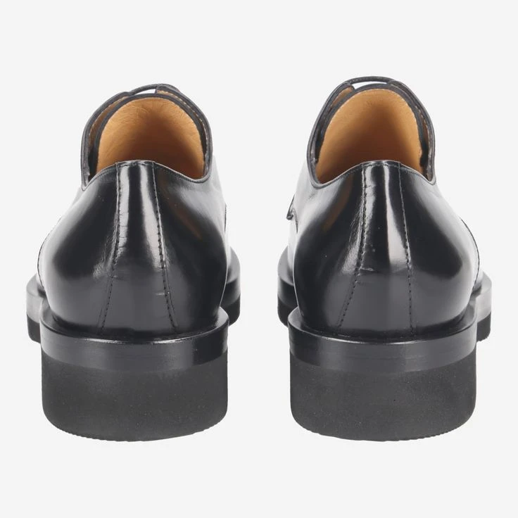 With this lace-up shoe you treat yourself to exclusive quality from traditional craftsmanship. The black smooth leather convinces with its high-quality workmanship, the effective tread sole rounds off the look exciting. Along the last runs a discreetly shimmering chain application and gives this model a touch of extravagance. Change the look with wide or narrow laces as you please. There are both variants for you.