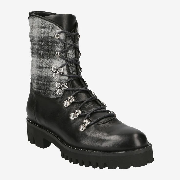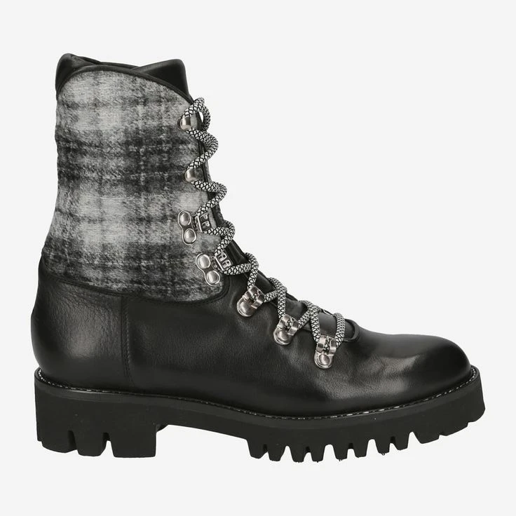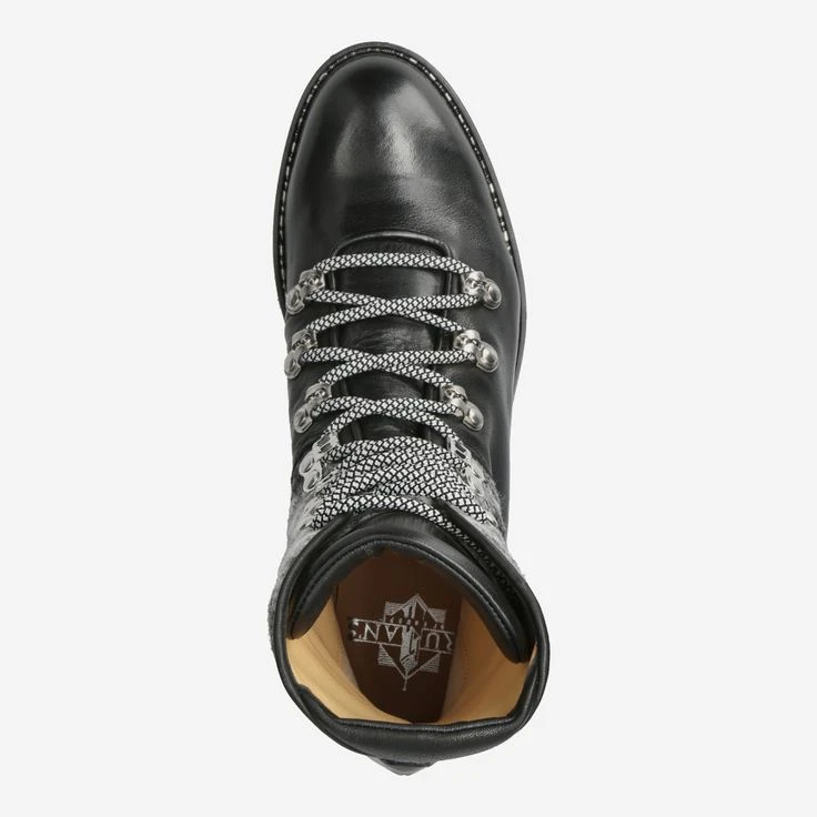 With this lace-up boot you can create extraordinary and very individual looks! Because the black smooth leather is effectively complemented by the textile addition in the shaft area. The mountain lacing underlines the urban look of the platform sole high-quality and functional. With great attention to detail, shoe craftsmanship and exclusive quality, the manufactory Trumans presents you this handmade boot that will surely inspire you!