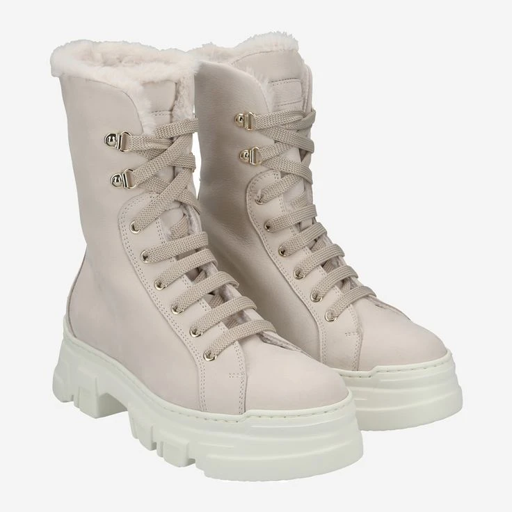 - Logo application, mountain lacing, gold-colored eyelets, platform sole