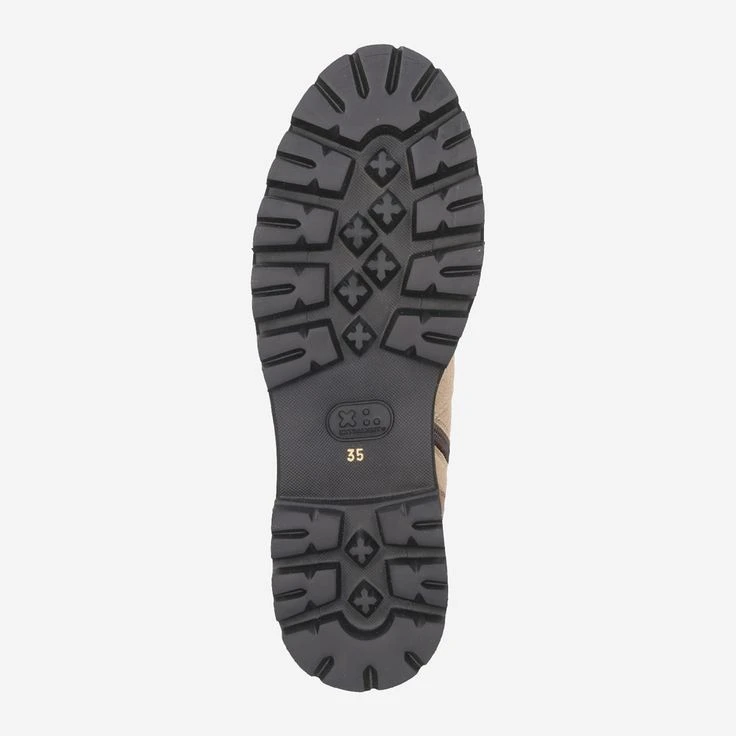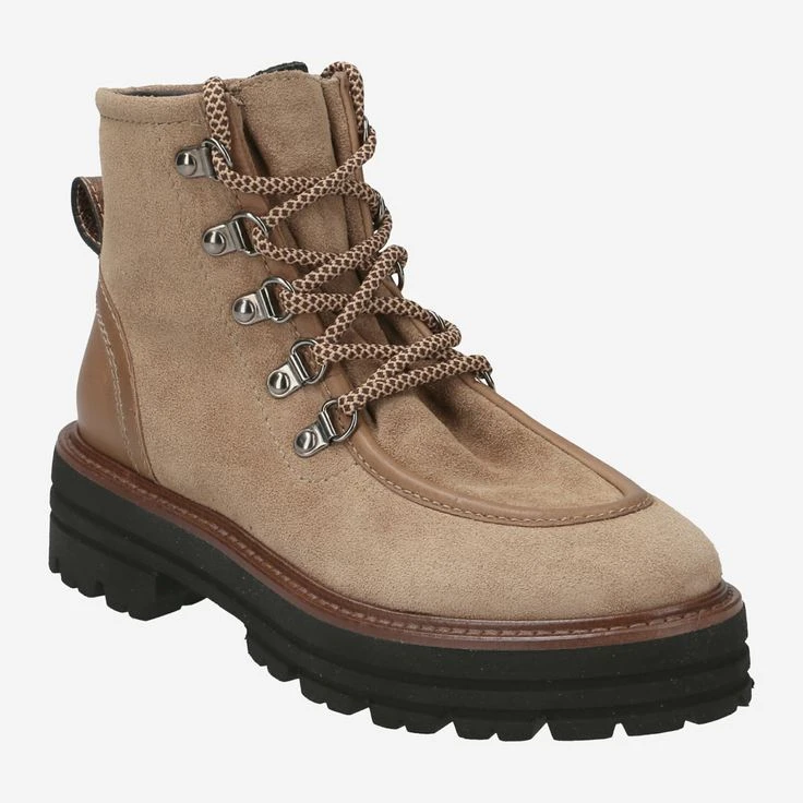 - Zipper closure, decorative stitching, contrast stitching, platform sole, entry loop, mountain lacing