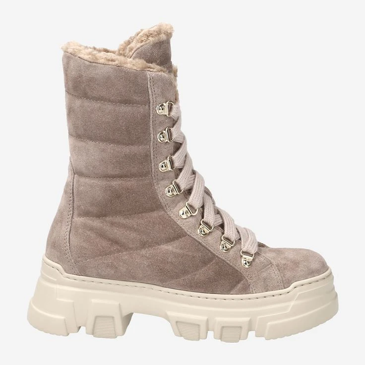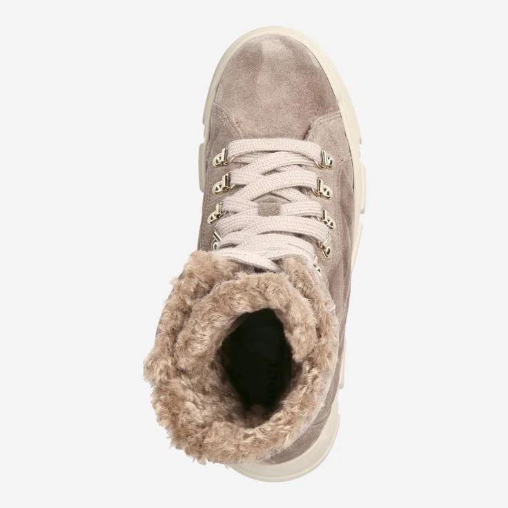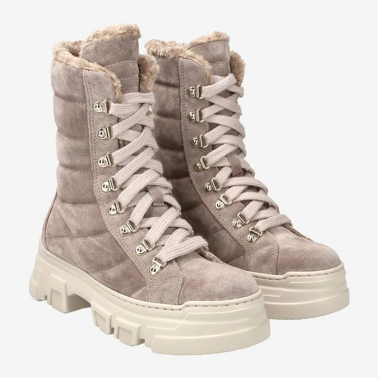 - Warm lining, platform heel, block heel, logo application, glitter yarn in laces, gold-colored mountaineering eyelets