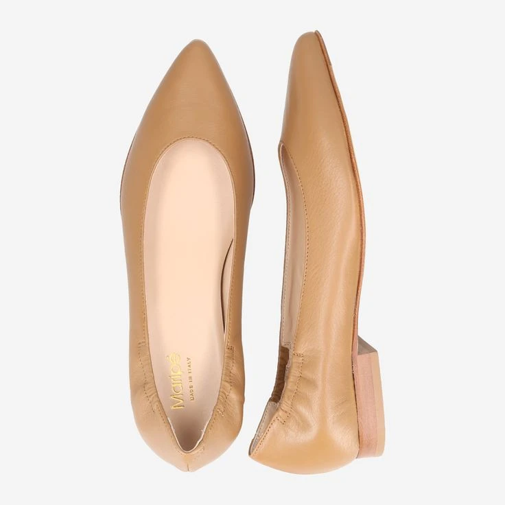 - Stretch inserts, breathable, 1/2 leather sole with rubberized tread and rubber heel, pointed shape, handmade in Italy, trendy color cognac