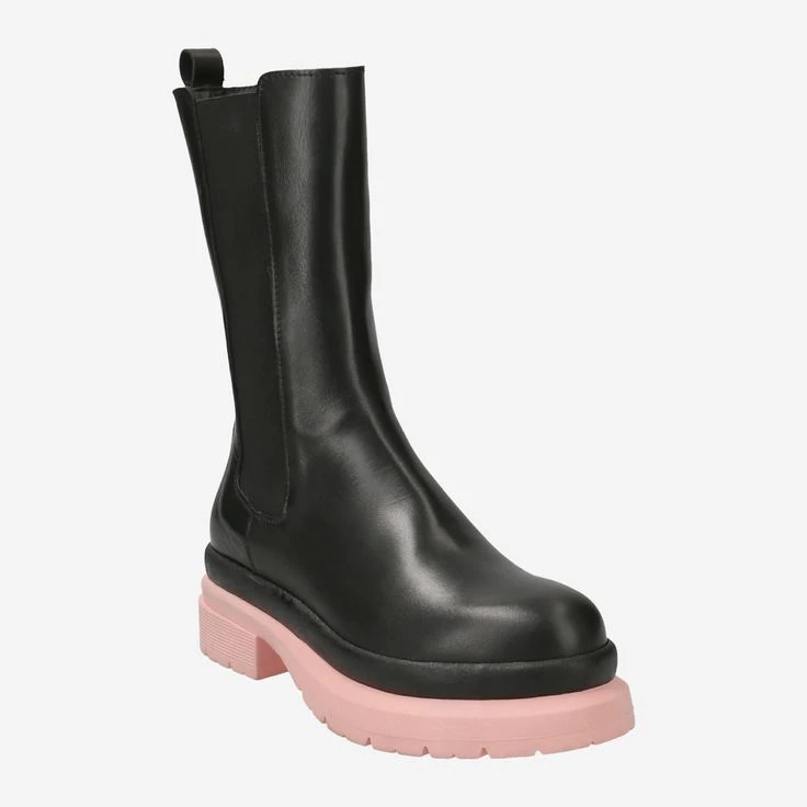 With “Eden 4”, Schuhe Lüke combines the classic long Chelsea boot with a trendy platform. The extravagant look is rounded off by the pink sole, which serves as an absolute eye-catcher! The black smooth leather is of exceptional quality, the lateral stretch inserts give you high comfort and flexibility. With this you show courage for color, sense of design and love for fashion!