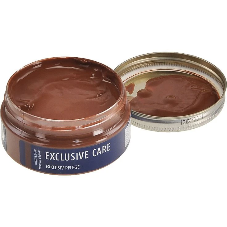 Noble medium brown shoe care for high-quality and delicate smooth leather. Intensively nourishes and cares for the leather with beeswax. Impregnates and preserves breathability. The light, gel-like formula is solvent-free and pleasantly scented. Contents: 100 ml. Directions for use: First remove dirt and dust, then apply cream and polish with gentle pressure.