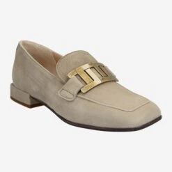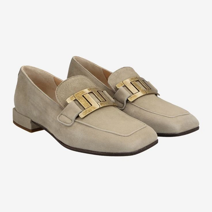 Create stylish looks in an instant with this business loafer. The masculine look of the classic penny loafer is underlined by the edgy design. Enchanting outfits can be combined here, both traditional in elegant style and exciting in a style break with dresses and flowing fabrics. Maripé complements the kaki-green suede with the metal application in vintage look.