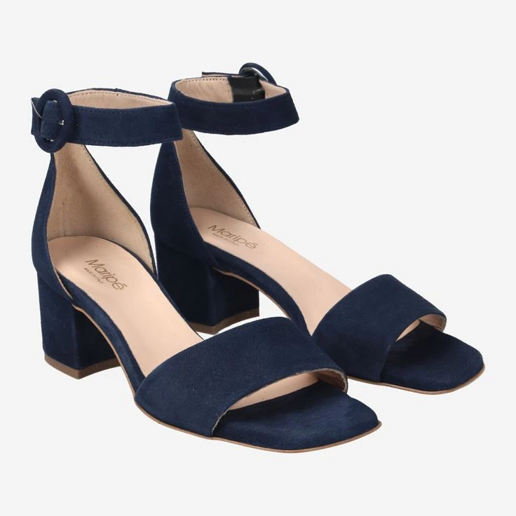 - Metal closure, block heel, breathable, stretch insert