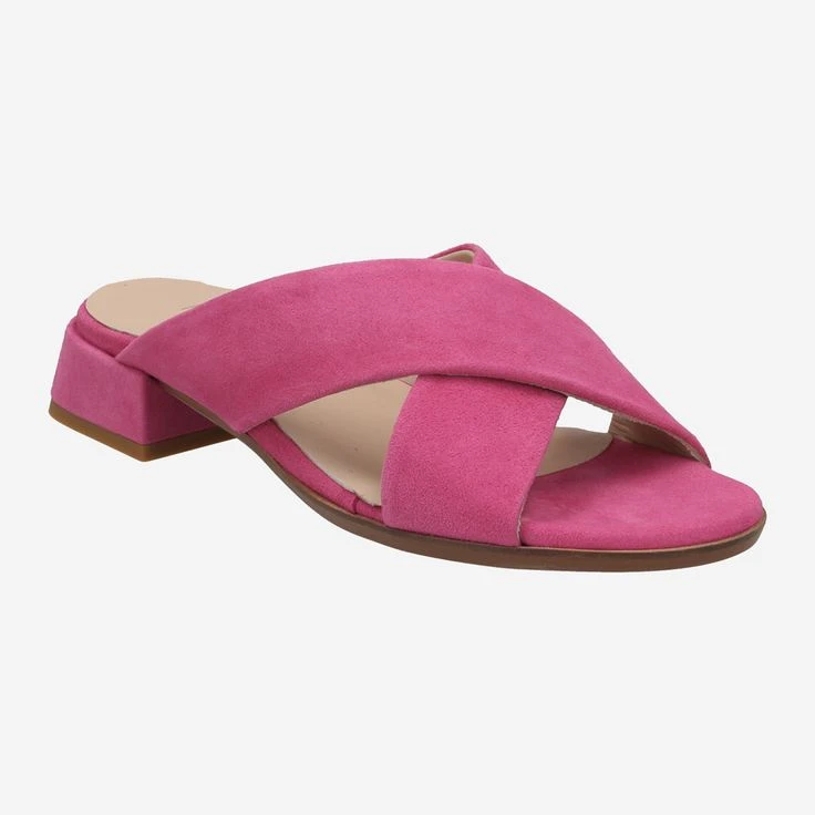 - Block heel, “dopamine dressing” trend shoe, leather straps, breathable