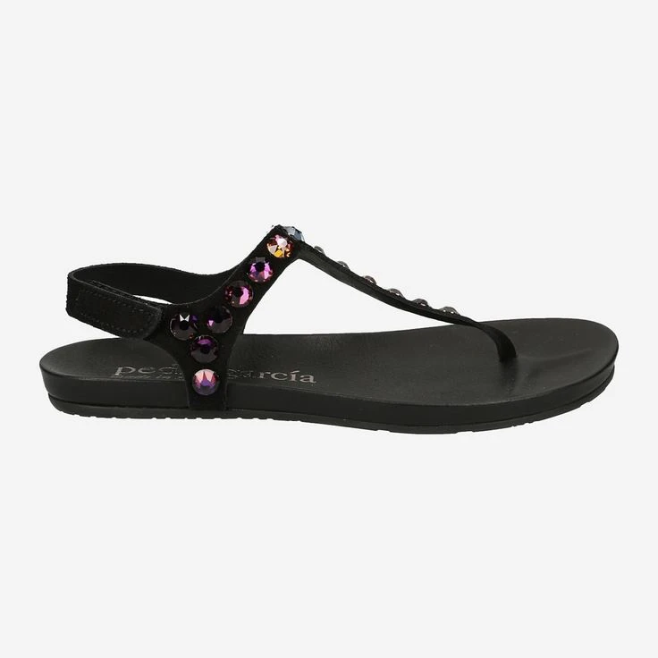 Treat yourself to luxury, design and exceptional lifestyle! This sandal from the luxury brand Pedro Garcia is in a class of its own: it is flat and therefore pleasantly comfortable to wear, but also captivates with its glamorous look. The straps of the model “Judith” are made of black suede and studded with a multitude of sparkling Swarowski® crystals that celebrate a unique play of light! Celebrate life with it!