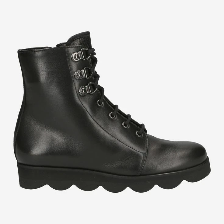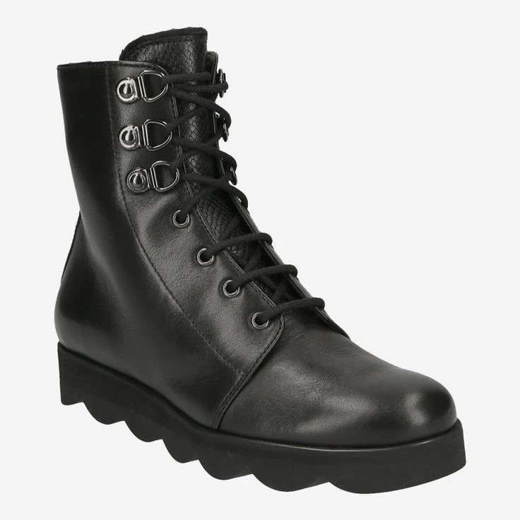 At first glance, a completely normal, black lace-up ankle boot? Watch out, here a second and third look is well worth it! La Cabala stands for classic elegance and exclusive workmanship. Both can be found in this model. This is complemented by the wave-shaped sole, the mountain lacing and a really cool designed leather tongue! It is hand embossed in reptile look and fluffy hemmed. Well – would you have recognized these exclusive details at first glance? We think this boot is implemented really sophisticated!