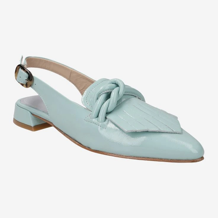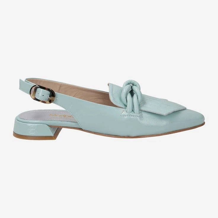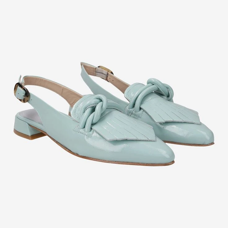 A color like a fresh summer rain! Simply gorgeous! What is the first thing that comes to mind? Turquoise green Caribbean, the bonbonière with honey-sweet confectionery from grandma, or a touch of nostalgia of the 60s … wherever you dream yourself, these sling pumps are NOW within reach! Because MATILDE by Maripé takes you on your own journey … gladly immediately on a creamy cappuccino at your favorite Italian!