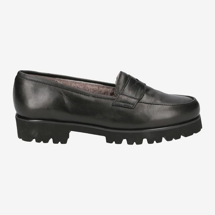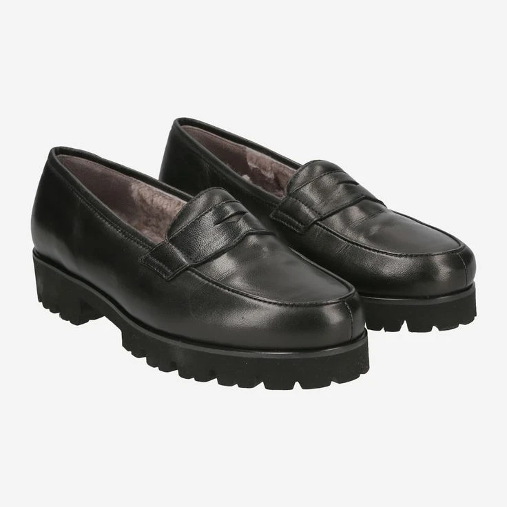Black penny loafer style loafers from Gritti made of smooth leather with high quality warm lining (100% lambskin) and a rubber tread sole for a better grip