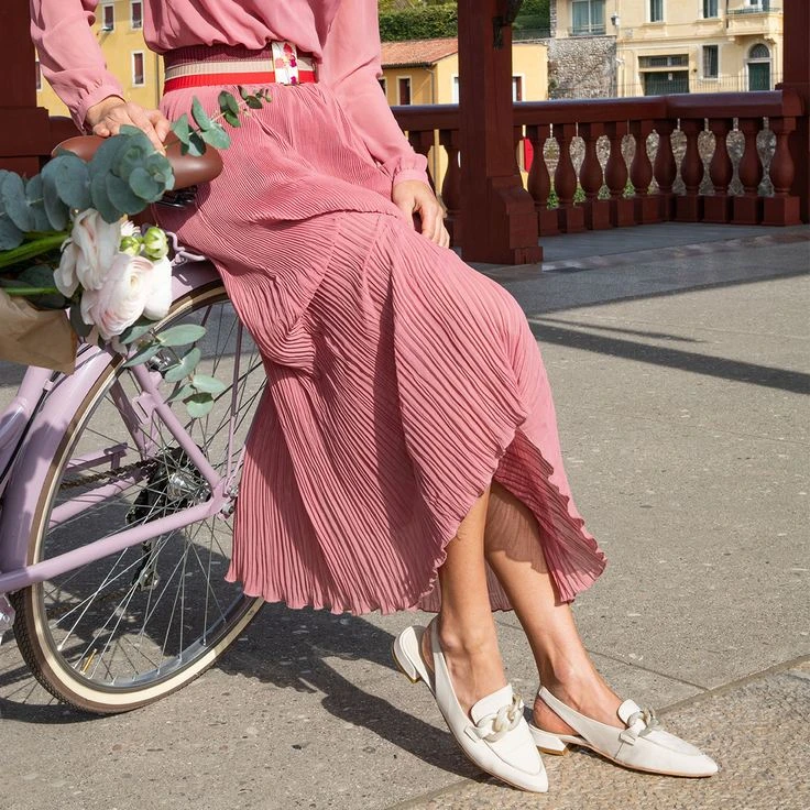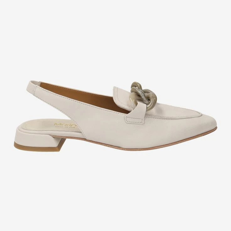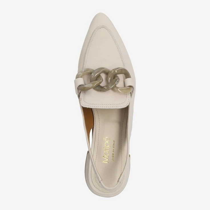 “Is not our aesthetic sense the only true eternal thing in us?” (Sophie Mereau) An enchanting representative of special aesthetics is the ODESSA sling pump by Maripé. Characterized by white nubuck leather, refined by chain elements and completed by feminine design, this model enchants your look in no time. Fashion is just always an expression of your individual facets!