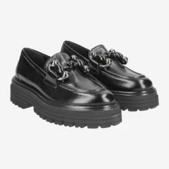 - Platform heel, loafer application, jewelry application in the design of a horsebit buckle with piercing elements, breathable