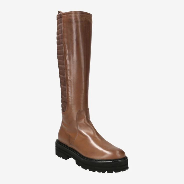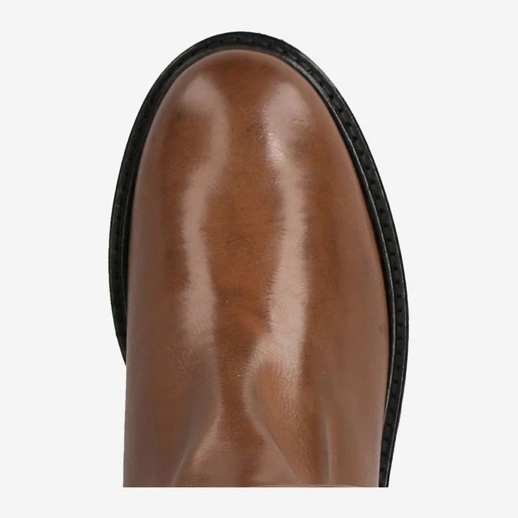 Produced in small numbers and made according to traditional footwear craftsmanship, these long-shaft boots you can see your exclusivity at first sight! The cognac-brown smooth leather has been precisely processed in the Italian manufacture Maripé, and refined by a decorative and functional stretch area. An additional zipper serves the entrance. The black rubber sole of “Vigevano Var.1” is extra light, and gives you a highly comfortable walking experience.