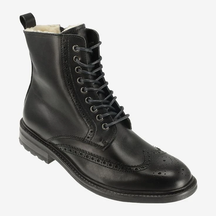 Travel, discover, experience, but above all enjoy in these lace-up boots from BLACKSTONE. The boots are made of black smooth leather and have a pleasantly warm lining made of 100% sheepskin. The leather lacing and a discreet perforation on the cap perfectly round off the design. They are super suitable for an outdoor day and give a cool look to any outfit. Experience the high quality and comfort of these shoes and carry them into the world!