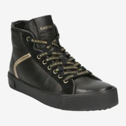 Who would have thought that the manufacture Blackstone creates such a stylish winter boot? This casual model scores purely visually with the luxurious interplay of the black smooth leather with the gold-colored details. The high sneaker shape makes it look sporty and dynamic. The highlight here is well hidden: the inner lining made of soft, warm sheepskin. This guarantees you a cool look and warm feet!