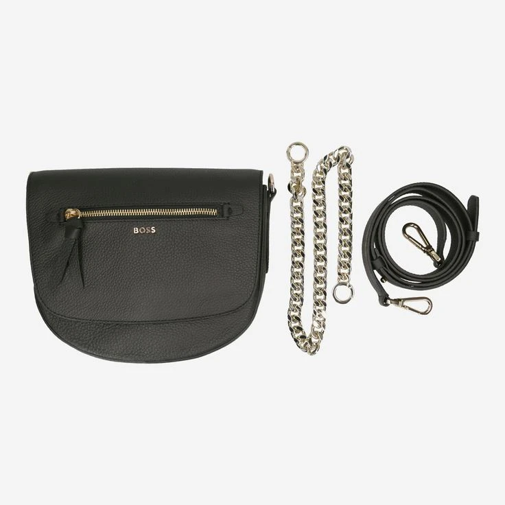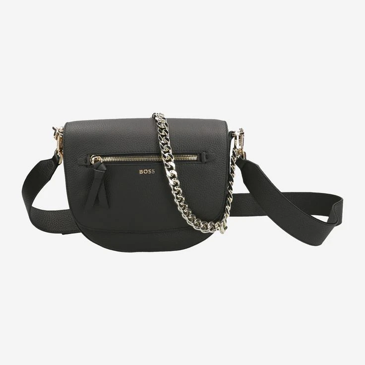 BOSS is already a guarantee of quality, luxury and exclusivity through the Italian brand presence. The noble designs also elevate the cult brand to a whole new level. BOSS knows the trends. But trends come and go. The art is to pick up trends and develop STYLE from them. This makes you elegant and unique. The black SOPHIE CROSSBODY bag is made of deep black leather. Logo details – as well as a detachable statement chain – adorn this luxury bag. Because we all know: style dresses best, Reduced single pair!