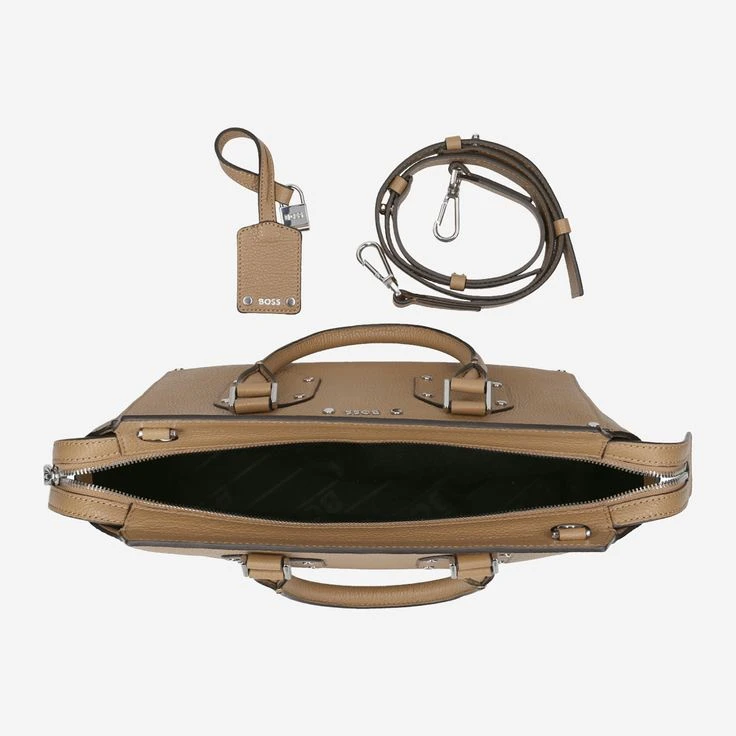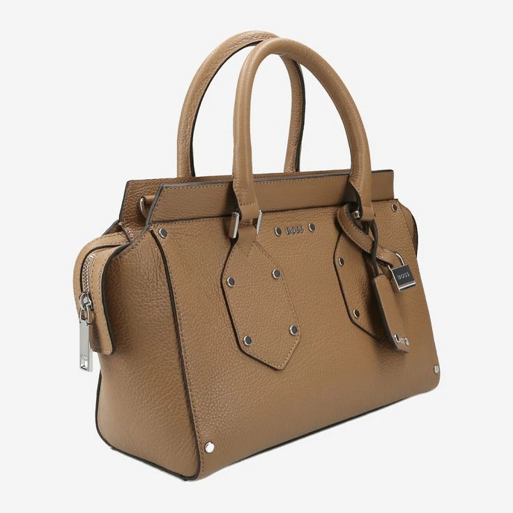 - Zipper closure, rivet applications, slip pockets, inside pocket, zipper compartment, detachable carrying handle, logo applications, logo application, , jewelry application (metal lock) H.20 cm X W.28 cm X D.12 cm, logo embossing