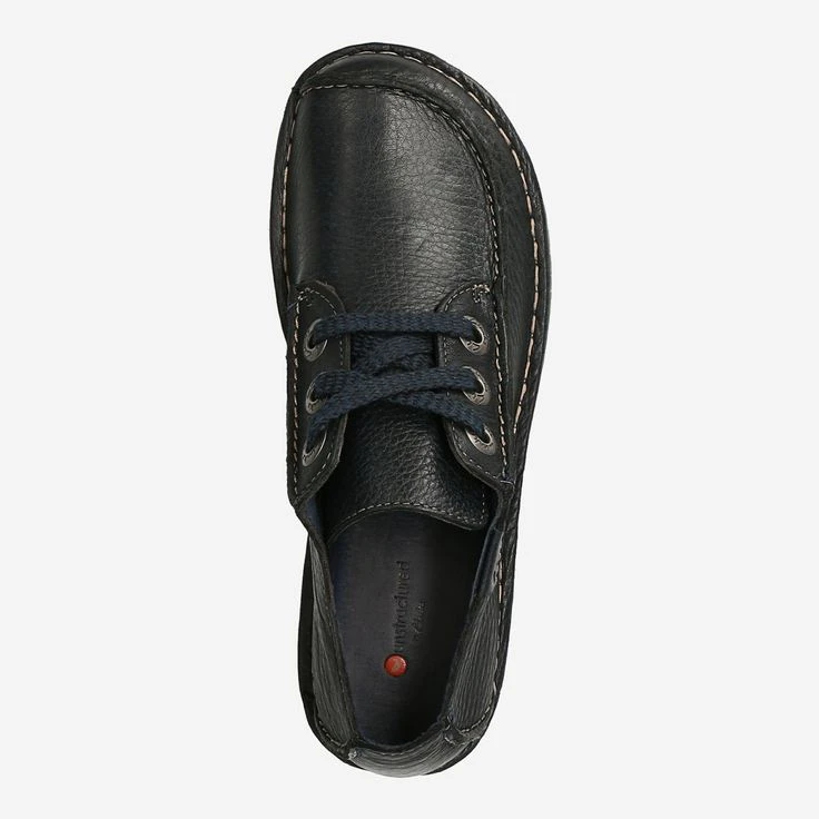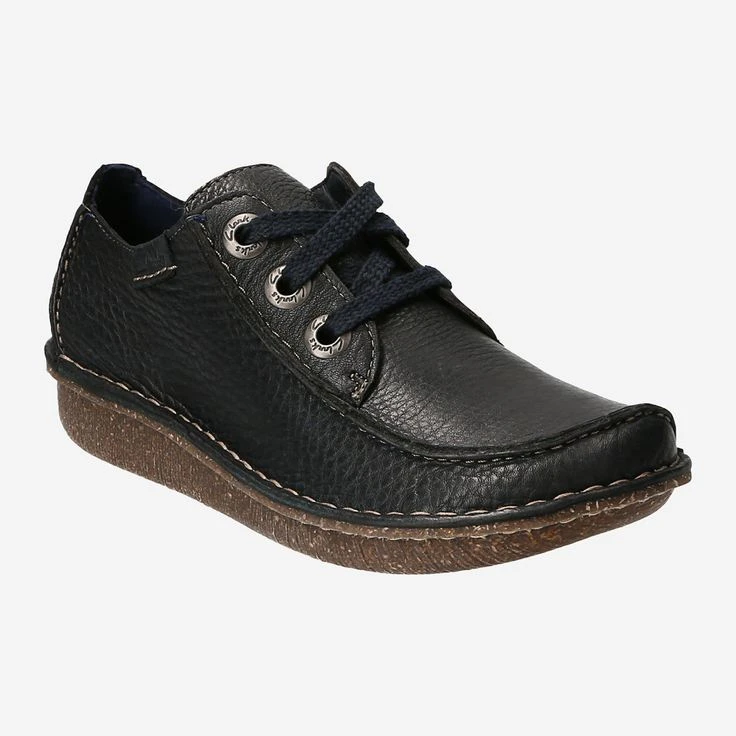 Dark blue, almost black women’s lace-up shoes from Clarks. The upper is made of fine-grained leather, the lining is lined with textile. The lace-ups feature a leather cover sole as well as a rubber sole. In addition, contrast stitching and logo embossing are incorporated into the shoe.