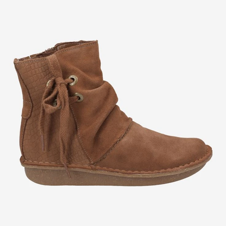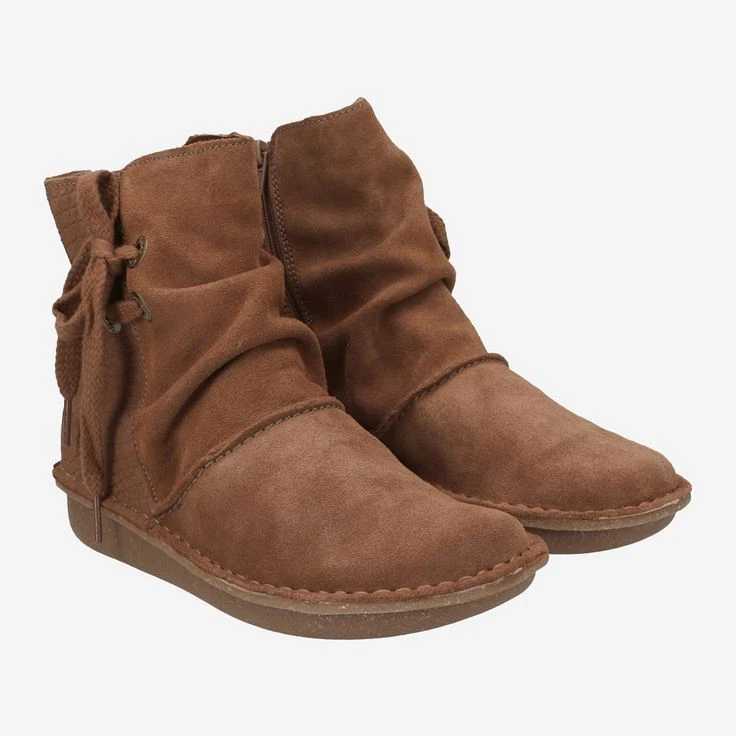 Complement your look with these original booties! They look really great with jeans, but also with knitwear combinations and dresses! In England, the brand Clarks is pure CULT and we also love the innovative designs of the brand. FUNNY OAK is made of cognac-brown suede and set in scene by a casual gathering. Areas of embossed leather bring a three-dimensional, vibrant feel to your new style!