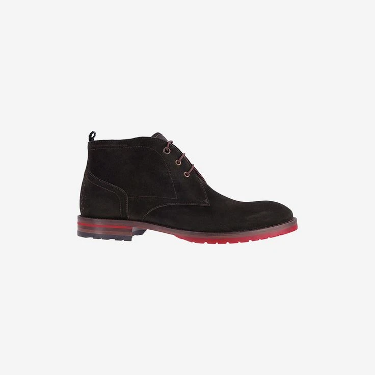 This casual lace-up shoe from Floris van Bommel inspires with a rather simple design made of dark brown suede. The rubber sole in the contrasting color red and the leather lining round off the shoe fashionably. The modern sole and decorative stitching fit perfectly with a nice pair of jeans.