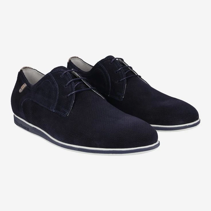 Floris van Bommel is a visionary in the shoe world and storyteller. The FV Bee logo on the bottom of the heel of PRESLI is a little picture and word joke reminiscent of honeycombs. The sole, made of durable TPU, is designed in a cool blue and white mix. The non-slip outsole provides the perfect grip on any surface. The removable footbed provides comfort. The dark blue suede with relief print comes from Tuscany. The leather label with the iconic “F” adorns the side of the shoe and completes the design.