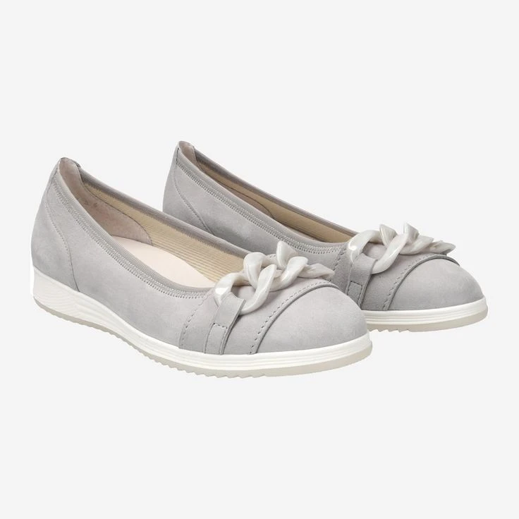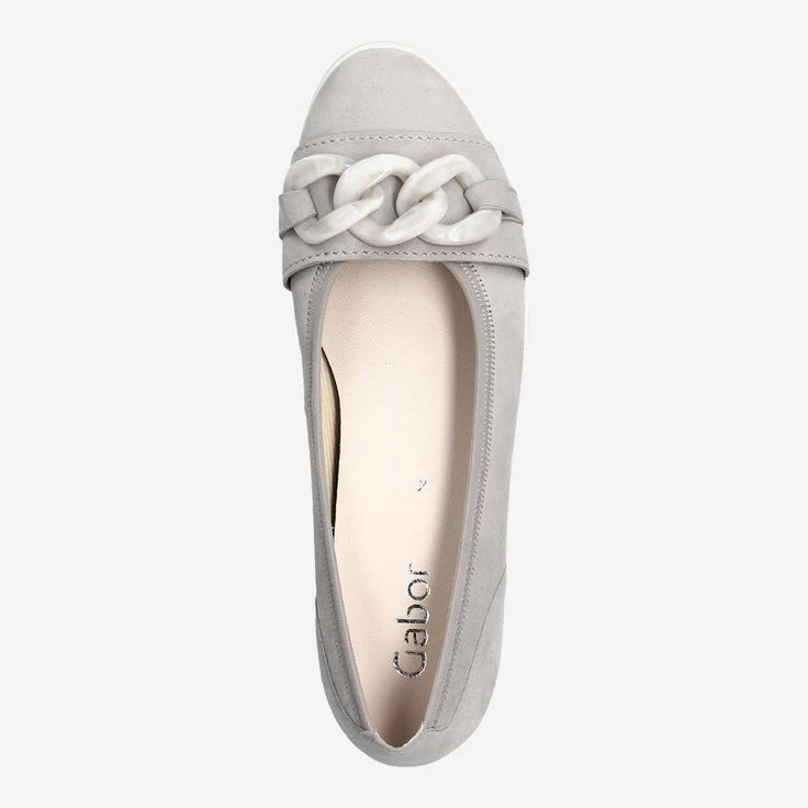 Enjoy summer lightness and a touch of extravagance! This light gray ballerina by Gabor underlines your look with esprit and charisma! The loafer application forms an exciting arc to the business style, and the white sole rounds off the design sporty-fresh. This makes your city stroll really fun!