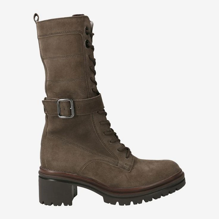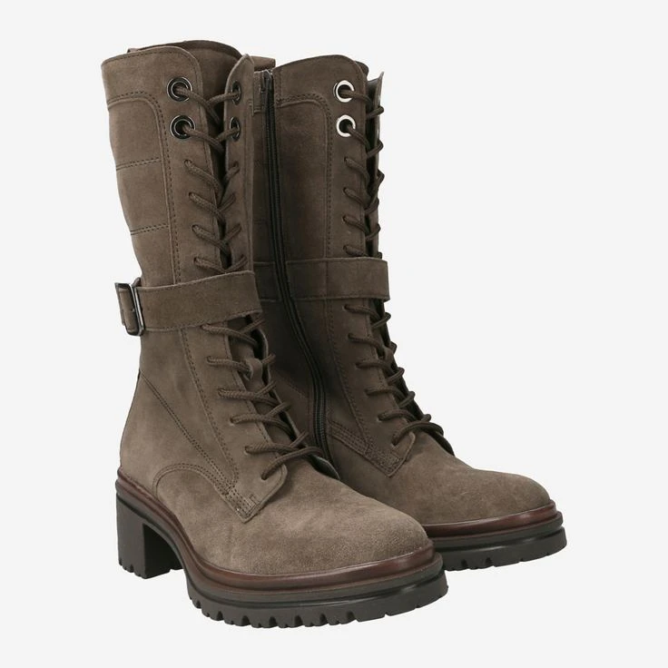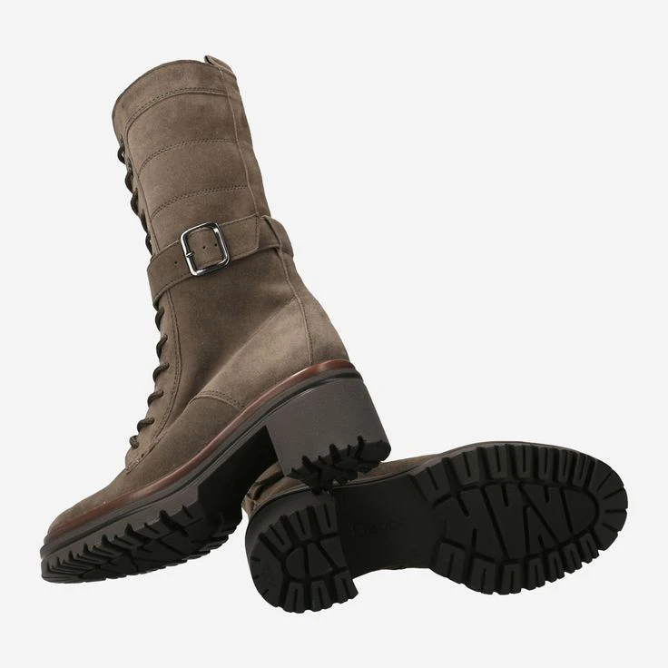 Cozy warm and really rocky is this brown boot from the house of Gabor! The wide block heel, the decorative stitching on the shaft and the leather strap with decorative buckle give this model an authentic look. For all those who love the special exactly the right choice!