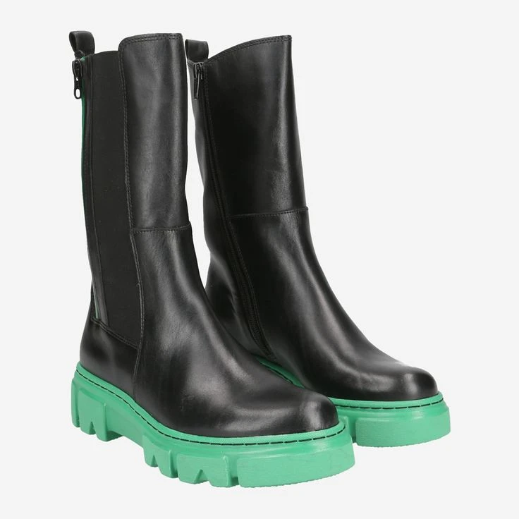 - Exchangeable footbed, Suitable for insoles, Stretch insert, Entry loop, Decorative zipper, Expressive green sole, Decorative stitching, Contrast stitching, Platform heel