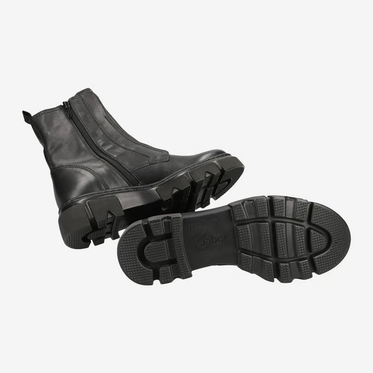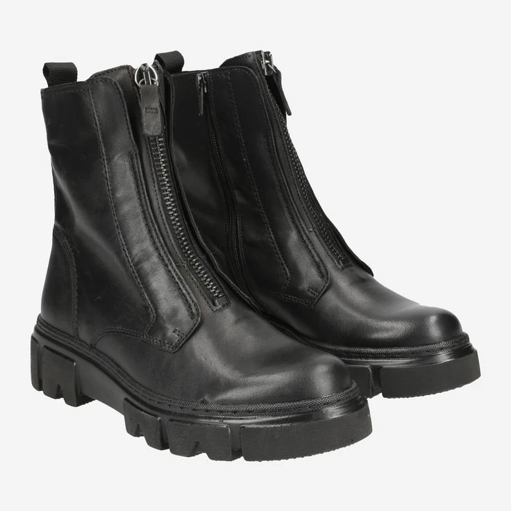 - Exchangeable footbed, suitable for insoles, block heel, warm lining, decorative stitching, front zipper, entry loop, leather application, wedge heel