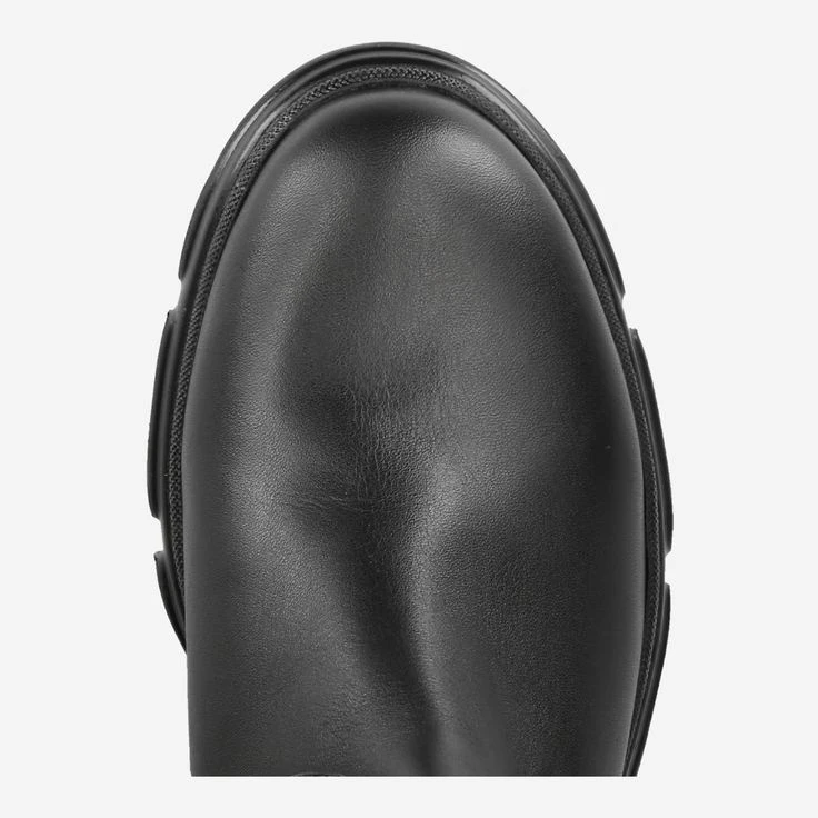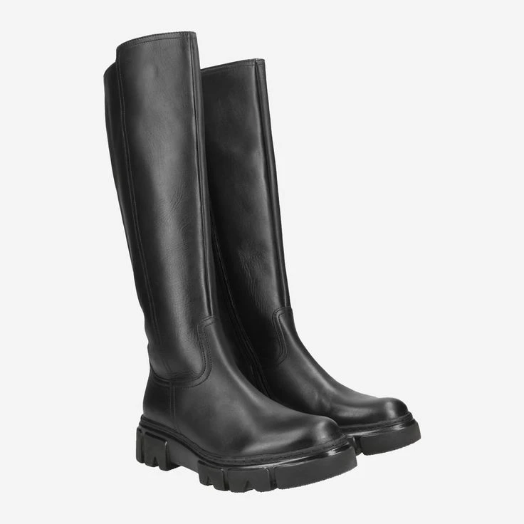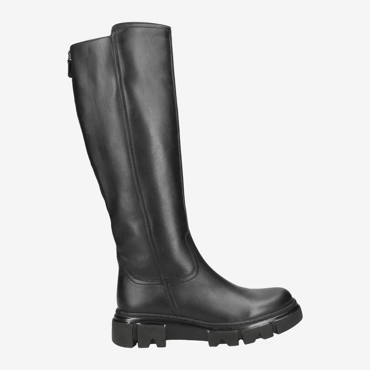 - Zipper for entry, additional zipper in the back for width adjustment, block heel, platform sole