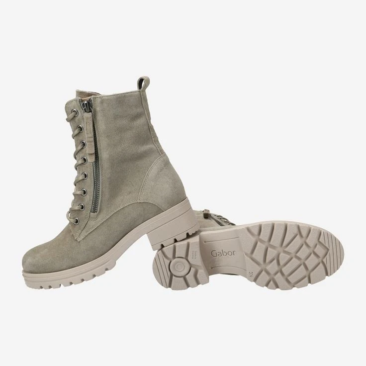 This casual boot made of powdery green suede rounds off your fall / winter look skillfully! The cuddly soft warm lining caresses your feet, and is super easy to clean (100% polyester). The bright sole transforms this model into a really hip statement boot that will make you stand out as a fashionista! Gabor puts with the two zippers still two optical highlights on top! To enjoy – and to use, because with it your entry is a dream!