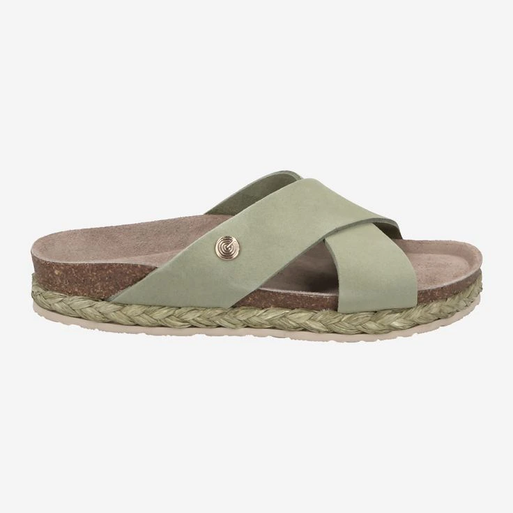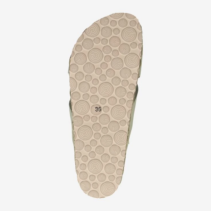 This sustainable sandal “Palace” of the Spanish manufacturer Genuins will inspire you! Genuins uses only regionally produced materials and still manufactures many steps traditionally by hand. The molded cork footbed gives you dreamlike comfort! The delicate green suede is summery complemented by the braided raffia strip, and refined by a gold-colored rivet application.